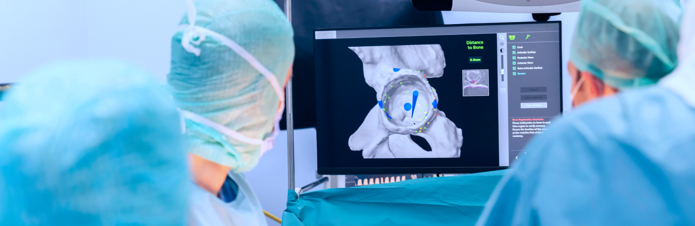 • controllo intraoperatorio innovativo con utilizzo di navigazione computer-assistita o chirurgia robotica nei casi selezionati, per garantire precisione millimetrica e un posizionamento ottimale della protesi;